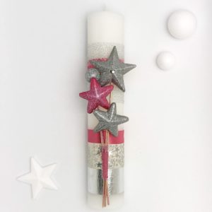 … sau cum să iubești armonia. O lumânare în tonuri domoale de beige și gri, cu materiale și texturi diverse, suprapuse în acord. Nisip natur și argintiu, dantele structurate și textile lustruite, alături de foița de argint, doar ca accent. Flori delicate de Lysiantus, Alstroemeria si Gypsophila. Elemente multiple și variate ce crează în final o imagine unitară, ca piesele unui joc de puzzle.